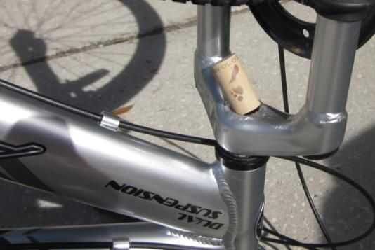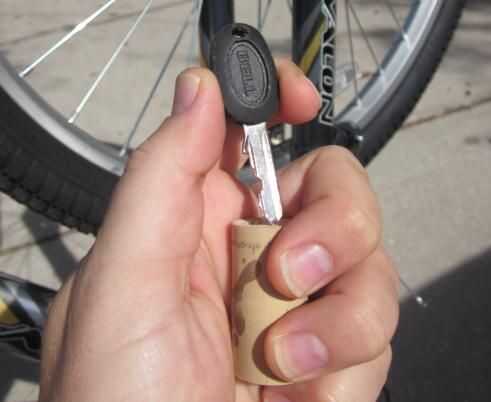 Así que tengo la gran idea de esconder la llave en mi bicicleta si nunca llego a tener que bloqueo mi moto, entonces no olvido la llave en casa. He encontrado un buen lugar inmediato cuando cumplí la bici boca abajo.