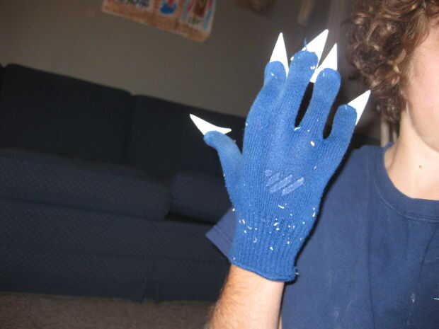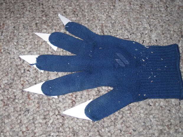 El primer paso es tomar un viejo par de guantes que uso puede utilizar y hacer lo mismo que hiciste con los dientes en el cabezal pero perfectamente esta vez su para garras. Después de cortar su cola caliente "garras" las garras en los guantes. he intentado de muchas maneras diferentes de hacer las tiras de naranja y blancas, y no importa cómo duro he probado a no podía obtener rayas naranjas y blancos. Tengo sugerencias sobre cómo, pero no puedo hacer la mayoría de ellos. Aquí están: conseguir pintura en aerosol naranja y blanca y pintura en aerosol que franjas de pintura acrílica muy buena, conseguir plumas naranjas y blancos y a pegarlos en los guantes o simplemente encontrar naranja y rayas guantes blancos o no utilizar guantes.