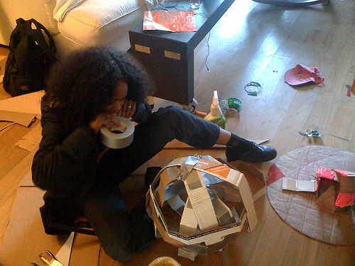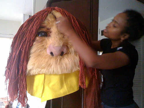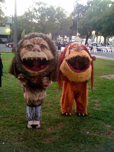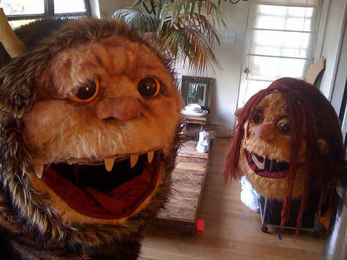 amamos caracteres "Dónde están las cosas salvajes" tantos y a mis hijas gemelas querían ser para Halloween. Me fui a trabajar con cartulina, viejos abrigos de piel, piel remnanats, un viejo traje de leopardo desde hace años, casa para animales y mi imaginación. Las narices se hicieron fuera de pantys y calcetines! No tengo experiencia ni educación en diseño o coser pero salió gran. Tomó alrededor de 1 semana a Carol de cabeza y luego KW tomó cerca de 3 días. Mis hijas estaban muy contentos y así fue.