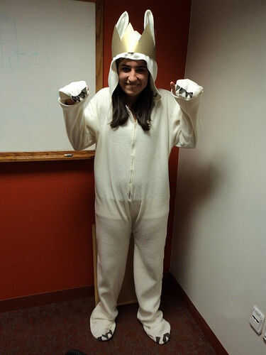 para mi, este traje ha sido un par de años en la fabricación - en mi mente. En la fabricación real, alrededor de un mes y medio.Yo soy un gran fan del libro; "Dónde están las cosas salvajes". Fue uno de los libros que realmente miraba adelante a