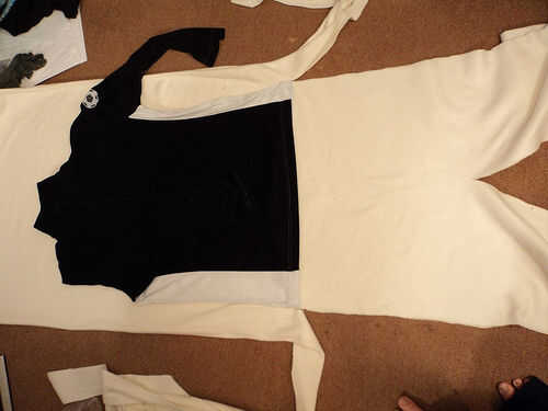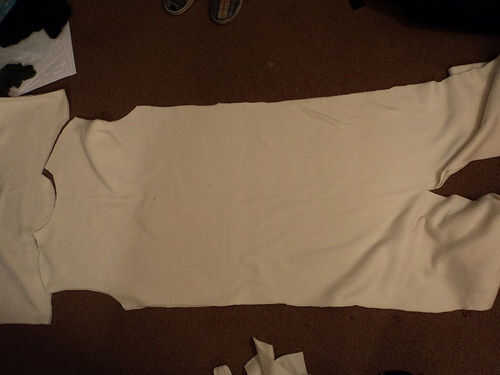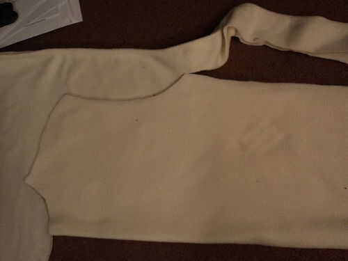 Ahora debe tener dos piezas de paño grueso y suave que parecen un traje de cuerpo sin brazos y piernas extra largas.
