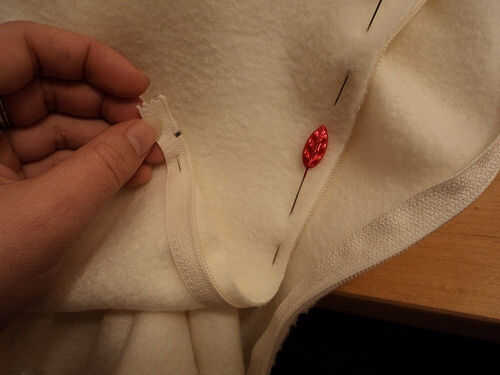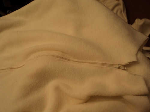 Usé una cremallera de 16 pulgadas hacia abajo de la parte delantera. Cortar una línea de la parte central e instalar su sorber o velcro. Hay algunas maneras de hacer este paso y 's realmente a usted cuánto tiempo y esfuerzo quiere poner. He dejado los bordes crudos aquí puesto que no debilite el paño grueso y suave y estaba quedando sin tiempo.