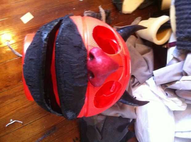 Usé más duro de la espuma para los labios que duro desde un viejo pelícano cámara estuche, se agregaron después de todo el corte y también la nariz y los cuernos, montadas con tornillos desde dentro en la parte inferior de los cuernos, así como de epoxy en el exterior.