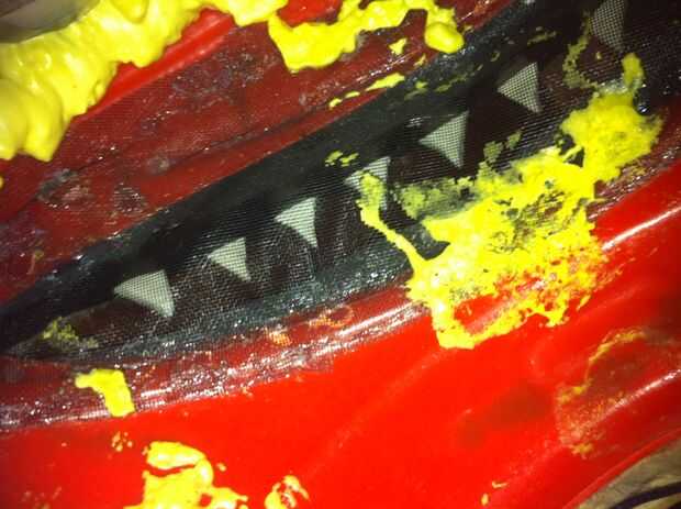 Luego añade malla para cubrir la boca y la máscara de mi interior. (en la foto se puede ver que algunos de la espuma en aerosol gotearon hacia abajo en la pantalla de alrededor de los ojos. Asegúrese de que spray espuma seca primero!)