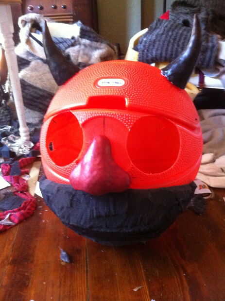 Me perfore los orificios para la boca y los ojos, había atornillada la tapa y cortar un agujero en la parte inferior de mi cabeza ir a través.