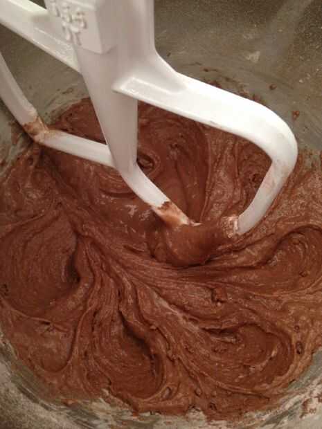 La mezcla de leche y vinagre junto en un tazón pequeño. En un mezclador, agregar azúcar, vainilla, harina, cacao, huevo y polvo de hornear y mezclar hasta combinar. Añadir la mezcla de leche y revuelva hasta que esté suave.
