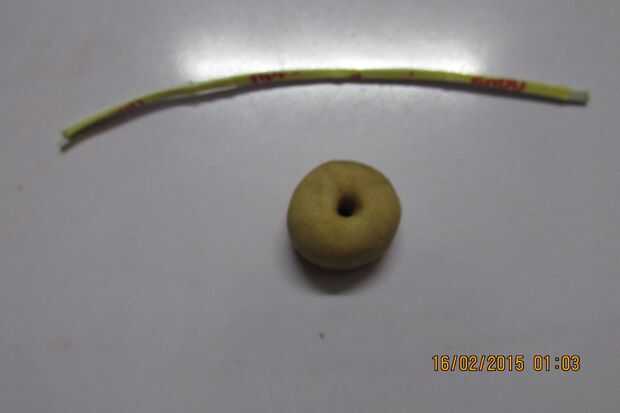 1er corte hacia fuera una hebra delgada de cinta de espuma y Envuélvala alrededor de la dona.