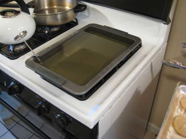 Cuando se hacen freír, coloque sobre una placa forrada con toallas de papel y luego poner una toalla de papel sobre la parte superior de la bien para absorber aceite en ambos lados.