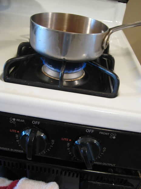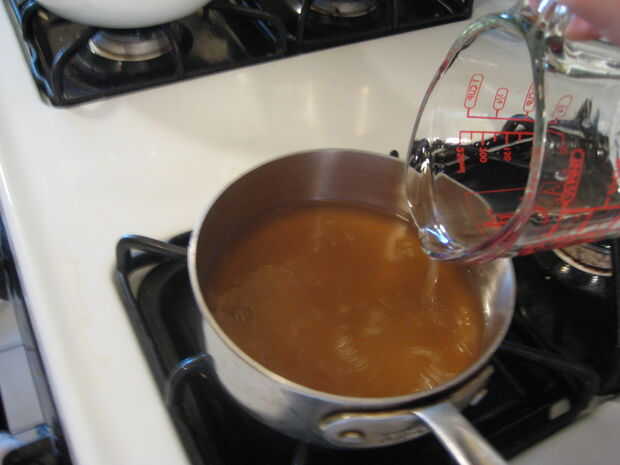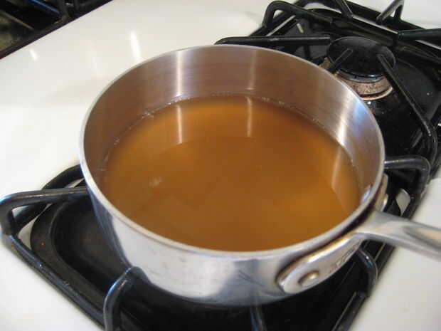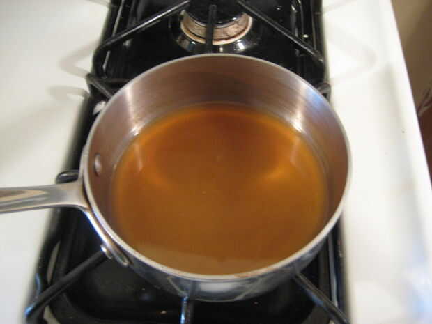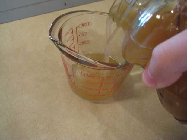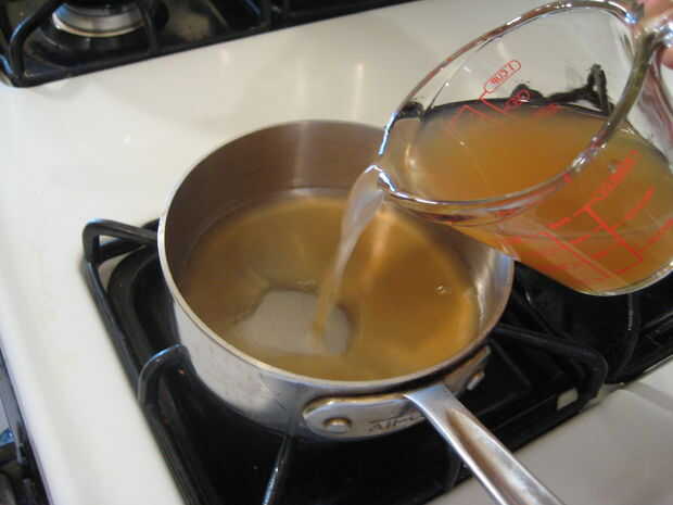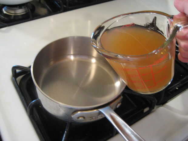 Vierta una taza de sidra de manzana en una olla pequeña o un tazón. Calentar a fuego lento durante unos 30 minutos o hasta que haya cerca de 1/4 de taza de sidra de manzana izquierda.