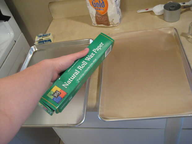 Cubrir dos bandejas de galletas con papel encerado y apártelos para más adelante.