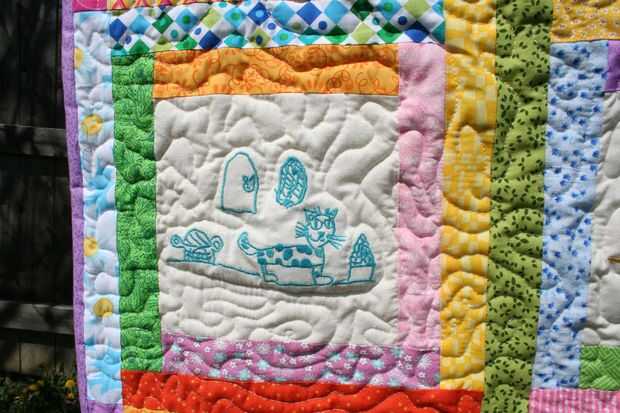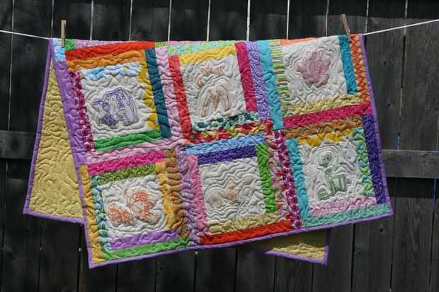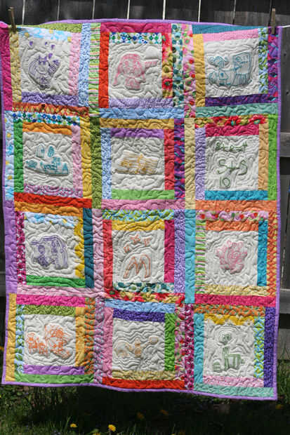 Hay un montón de diferentes maneras para volver a designar estos tesoros, pero ninguno de ellos realmente apeló a mí mucho. Pero ya que soy bastante bueno en todo lo de coser, y ya que tengo una máquina muy bonita con el software que me permite digitalizar mis propios diseños de bordado... Decidí ponerla en una ceñida edredón y almohada que podía mantener. :)