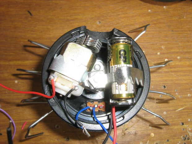 Conecte el motor y las baterías para el tornillo central. Utilice las piezas de hierro.