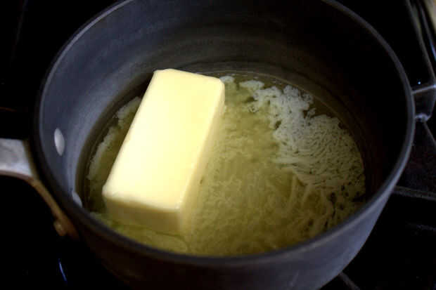 Precalentar una cacerola pequeña a fuego medio/medio bajo y lanzar su palo de mantequilla. Comenzará a burbujear para arriba un poco como que se derrite Agitar la sartén alrededor en lugar de revolver con una cuchara.