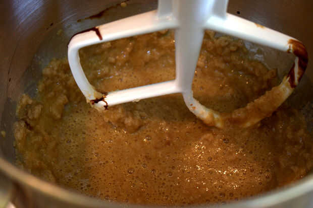 Añadir los extractos y melaza a la mezcla de mantequilla/azúcar a velocidad media-baja.