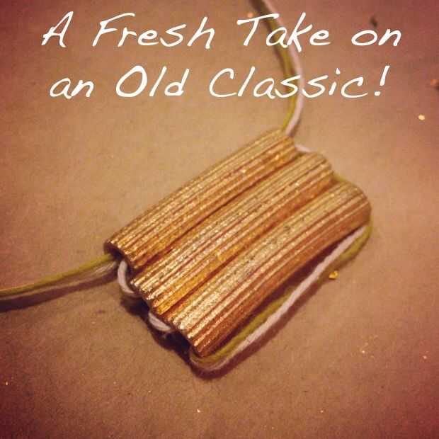 este collar está hecho con una vieja caja de macarrones y queso. Es reversible, con un patrón en un lado y un patrón diferente en la parte posterior.Esta técnica también podría ser adaptada para una pulsera.Paso 1: Necesitarás... Para hacer este coll