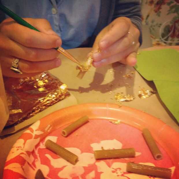 • Cubra suavemente una hoja de pan de oro sobre los tallarines