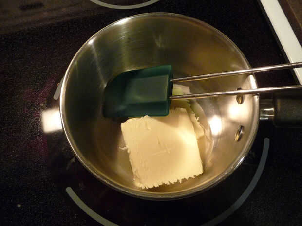 Mientras que el agua esté hirviendo empezar a derretir la mantequilla a fuego bajo.