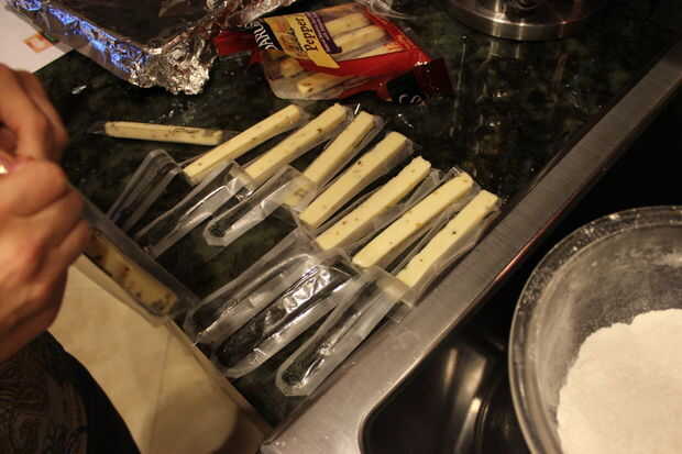 4) ahora, muy suavemente, hacer su doble Doritostix maltratada en la freidora uno a la vez.