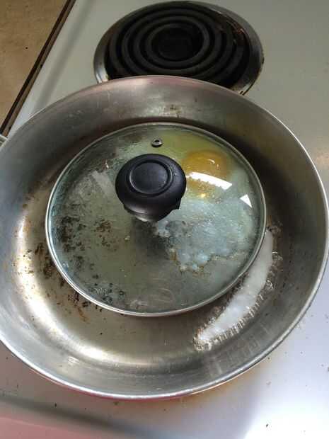 ¿Recuerdas cómo el calor desnaturaliza las proteínas? Vas a usar la cubierta del pote para atrapar el calor de la sartén para ello puede desnaturaliza las proteínas en la yema de huevo.