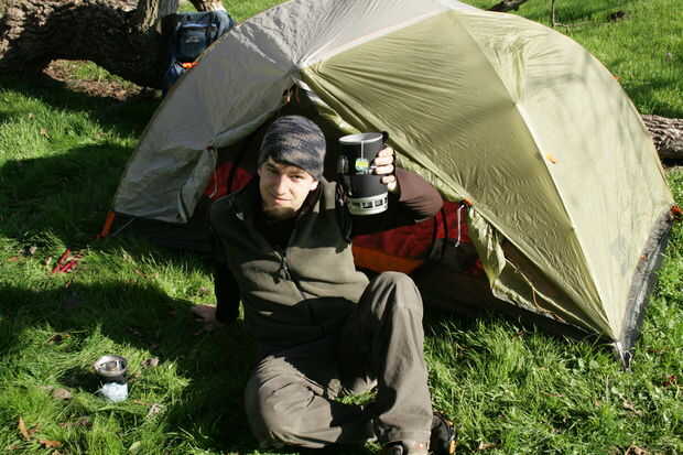 Este es probablemente el paso más agradable. Sentado hacia fuera en el frío después de un largo día de estar en comunión con la naturaleza, es muy poco lo que es mejor que una bebida caliente. Yo personalmente prefiero el té, pero coco caliente y mezclas de bebidas calientes como la sidra de manzana o gatorade son también favoritos. El propósito de este paso es doble: te calienta y te hidrata. Prácticamente no hay parte del camping que es peor para la hidración mejor y dormir no es una excepción. No exagere, sin embargo; una taza o dos es bueno pero pasado que estás probablemente en una caminata nocturna al árbol. Usted debe también comer algo, obviamente, pero si usted no ha descubierto usted probablemente no debería ser camping.