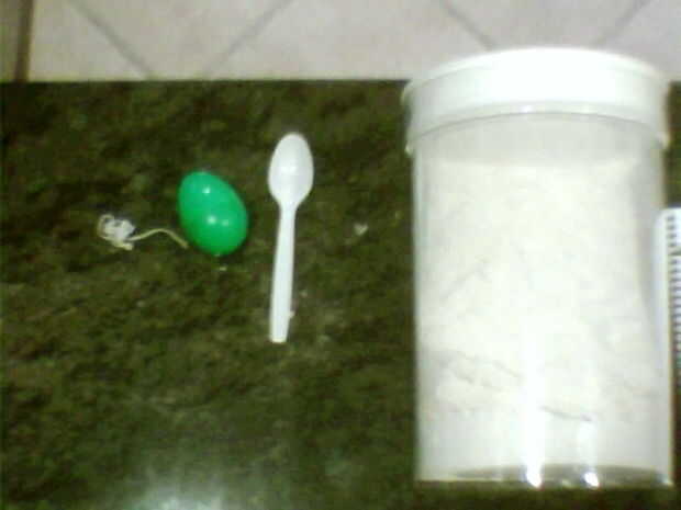 necesita: huevo de Pascua, la harina y una cuchara, tirachinas (opcional y no se muestra).