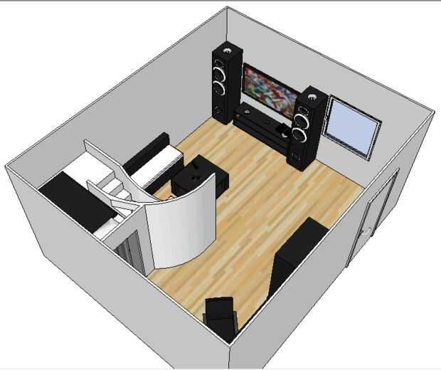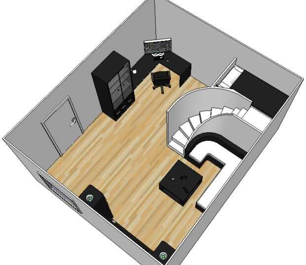 Aquí es el espacio visto desde diferentes ángulos. La habitación es de 6 x 5 x 3 metros (LxWxH).