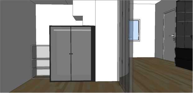 Aquí hay un par de fotos de la cama, el sofá y el Walk-in closet. El vestidor es de 1,8 metros de altura.