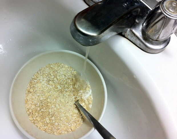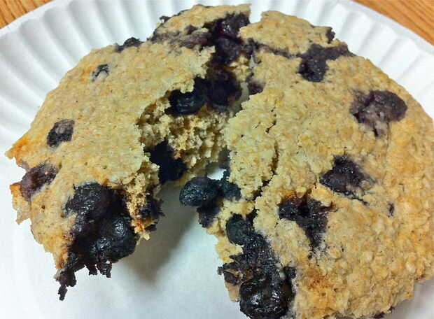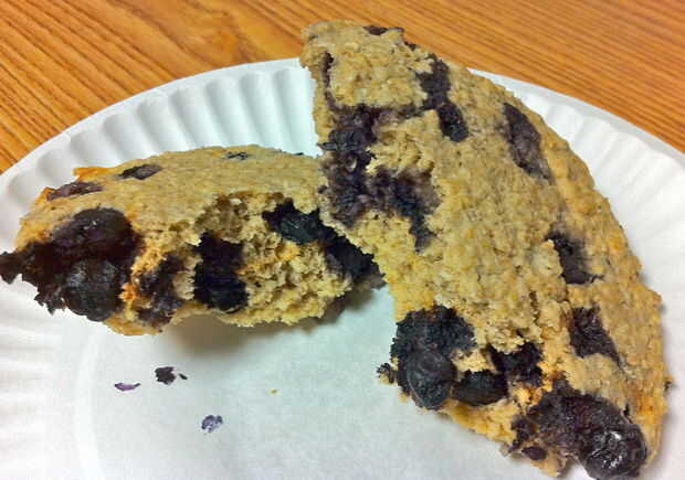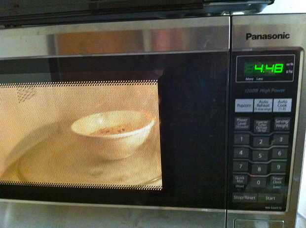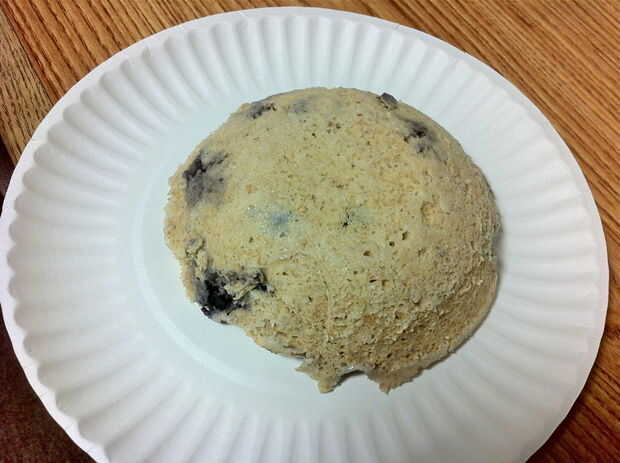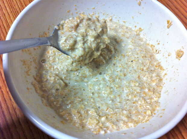 Separar el campo de avena de los lados del tazón con una cuchara y luego flipan el trozo en un plato de papel por lo que es boca abajo. Microondas nuevo en media-alta para 2-3 minutos para un scone gooey, 3-4.5 para un scone crujiente.