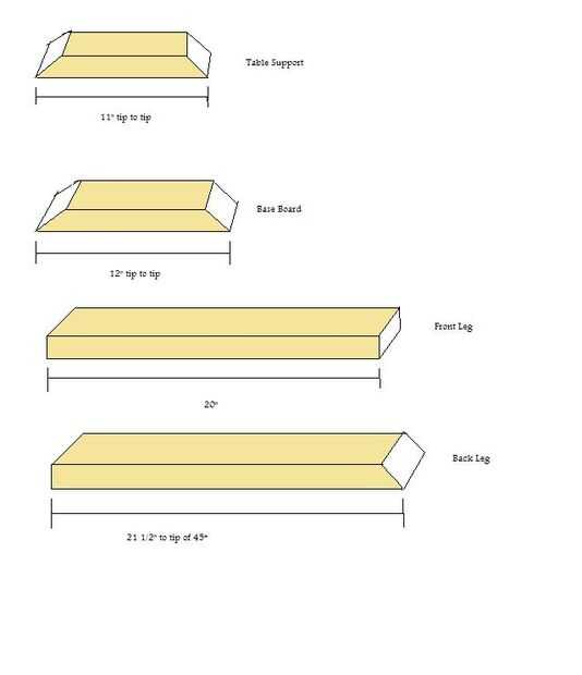 Los soportes de mesa (2) deben ser 11" con un ángulo de 45° en ambos extremos (medido desde los puntos más largo)