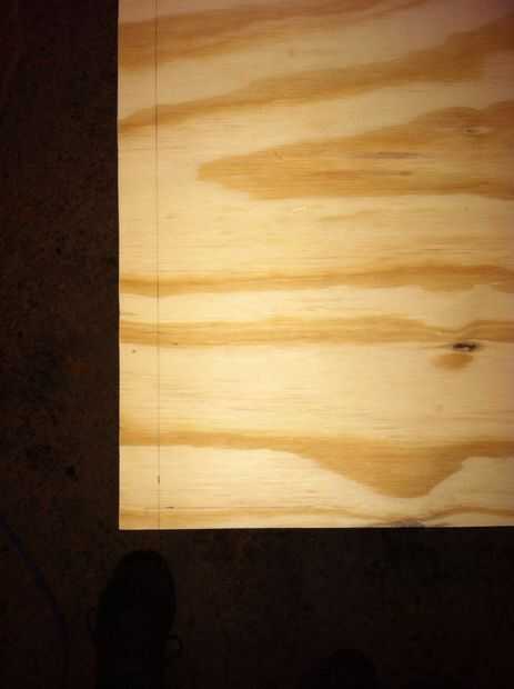 -Marque una línea de 1/2" desde el borde posterior de la madera contrachapada.