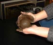 bueno primero lo que tienes que hacer es encontrar un lugar donde hay tierra húmeda / del suelo, o hacerlo con seco y añadir agua. al obtener este agarrar un puñado y empezar a formar una bola. Como haces esta prueba tan dura como sea posible exprimir toda el agua. Así que neo debe tener como una bola de barro como el de la foto de abajo.