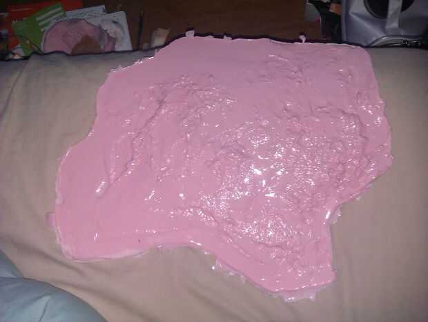 Cuando esté satisfecho con su pared mezcle su molde que hace el caucho para arriba (esto de comprar en línea o un arte y artesanía almacena como craft hobby) (siga las instrucciones en el envase para mezclar ya que cada marca es diferente) Vierta la mezcla a la pared y cubrir completamente la esculpe.