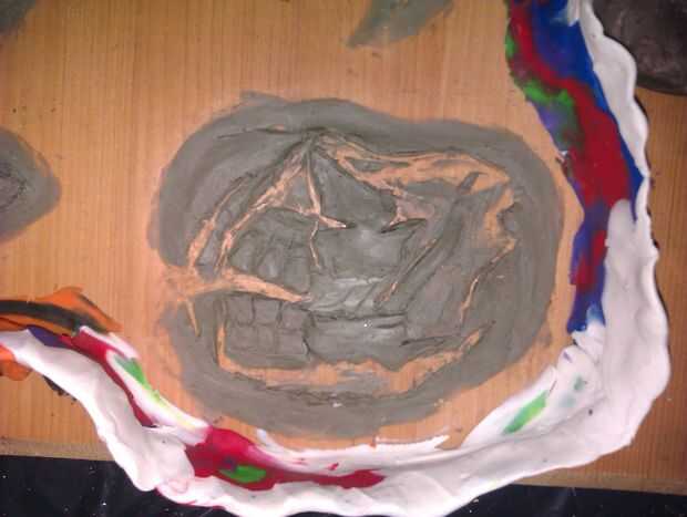 una vez seco tire la goma del tablero y quedará con una impresión de su escultura, limpie cualquier arcilla que ha quedado en la impresión y su listo para el siguiente paso.