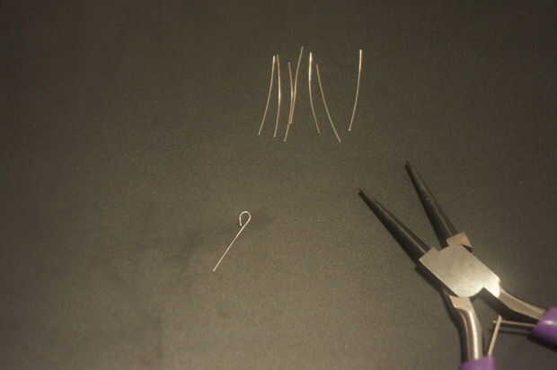3) tomar la corte 1 pulgada pieza, a tratar de un extremo a la curva en forma de bucle con el alicate de punta redonda.