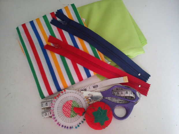 Para este instructivo: cremalleras de 2 x 20cm 40 cm x 23 cm tela (externo) tela de 40 cm x 23 cm (tela de la guarnición) Y costura básica, como aguja, hilo, alfileres y tela tijeras :)