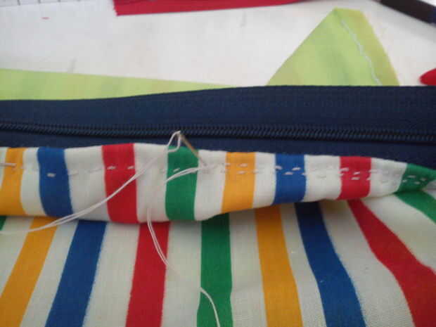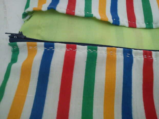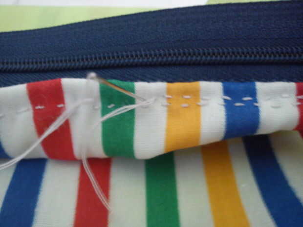 Coser las cremalleras, un lado en un momento. Las puntadas visibles en la parte posterior, coser tan cuidadosamente y con hilo similar a la tela. [fotos borrosas, lo siento >. < no tengo una cámara, así que usé mi teléfono]