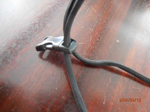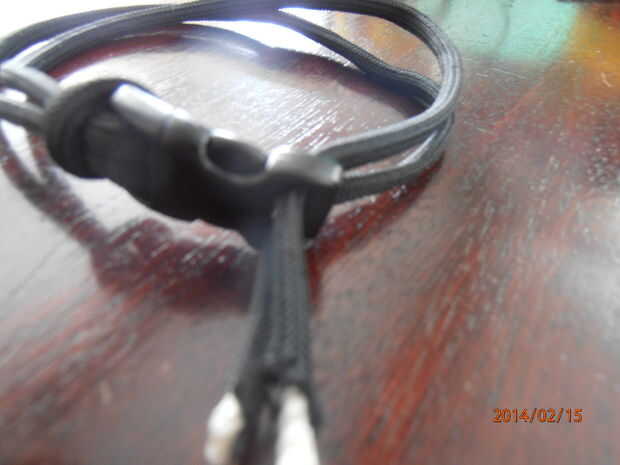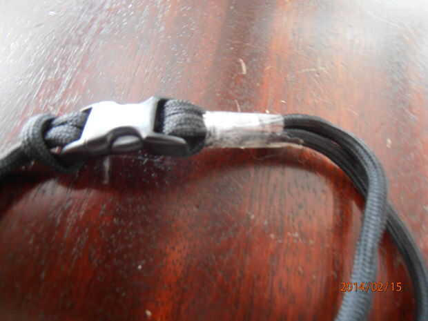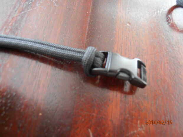 El paracord a través de la ranura del hilo de rosca y átelo como se muestra, colócala en el otro lado, luego cinta adhesiva.