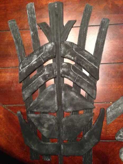 Algunas cosas en cuenta. Las hojas del triángulo eran esculpidas con espuma entonces cubiertas en un molde temporal flexible de Michaels. Luego fundido en resina de poliéster. Por lo que son de plástico.
