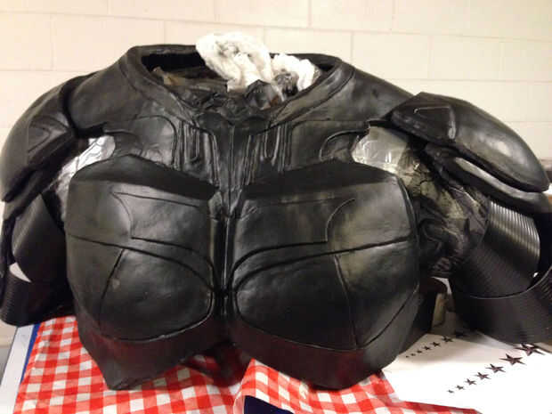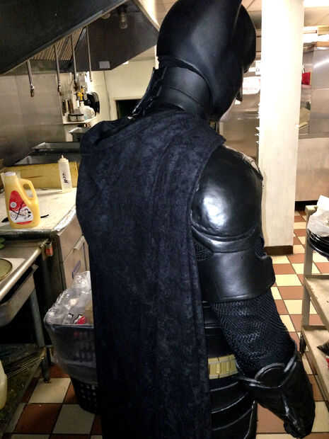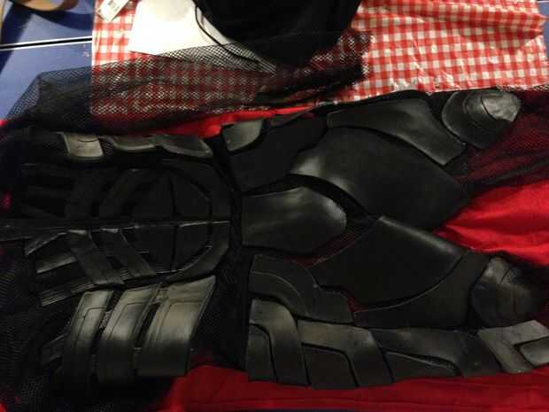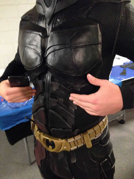 En este punto necesitará utilizar su maniquin ductape o un amigo muy paciente que no pegamento mente de ustedes le a su traje. Hemos perdido mucha buena piel haciendo el murciélago.