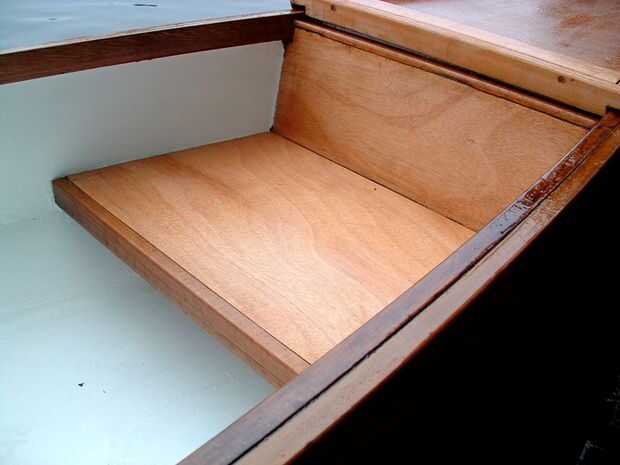 Cuando se corre el agua blanca generalmente mueve al paddler del arco detrás del asiento de proa a una posición de rodillas para mantener el arco de sumergirse en las ondas estacionarias y bajar el centro de gravedad. Comencé con los asientos en esta posición más cercana al centro del barco y bajo en el casco. Esto permite para proa y popa mamparos que sirven como marcos para simplificar el proceso de construcción y proporcionar almacenamiento de información.