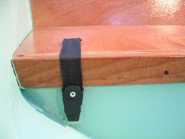 Esto demuestra cómo el asiento del arco fue trabado. Nota de espuma de goma y tornillos que van dentro de los agujeros para sujetar la parte trasera del asiento. Gran tiro del asiento del arco