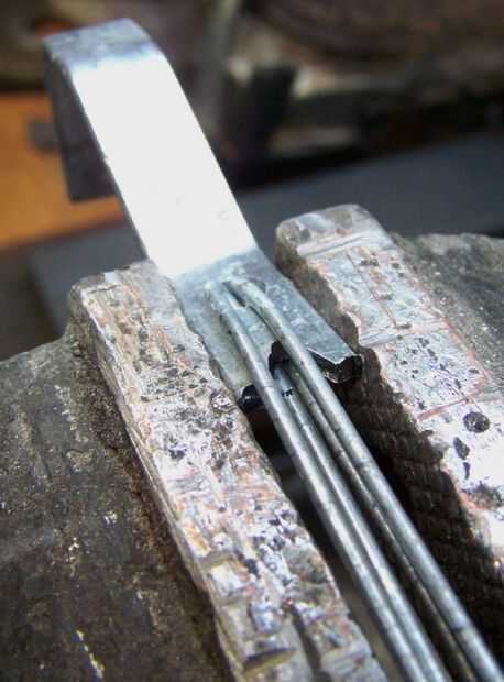 Elegí tres hebras de alambre para hacer el mango del viento. Tres hilos trenzados de alambre de acero #13 proporcionarán fuerza suficiente para lo que sea necesario, pero se pueden doblar cuando la cabeza del grabber necesita llegar a una esquina. Más adelante se puede enderezar otra vez. Se trata de un simple plan para la construcción del mango, sin embargo el mango un montón de flexibilidad. Ver los cuadros de texto para obtener información sobre el agujero y la ranura "V" que hice en la pieza de acero para la cabeza.