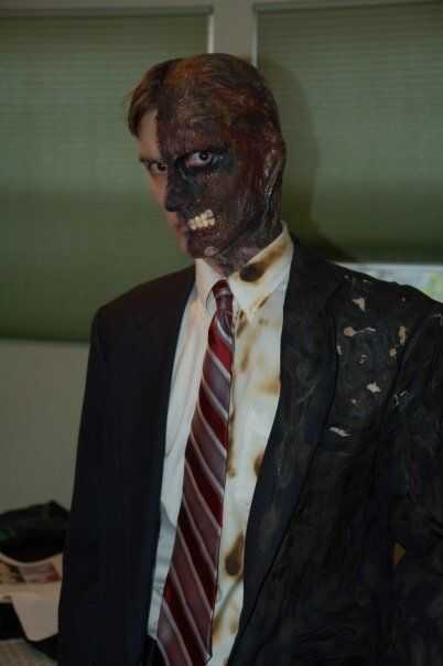 Haber tenido cierto éxito unos años atrás con mi traje de Joker impresionista, para 2013 que decidí tomar una grieta en el otro villano de Batman, dos caras. Una de mis razones para tomar esta ruta es que he cansado de poner gran esfuerzo en los tra