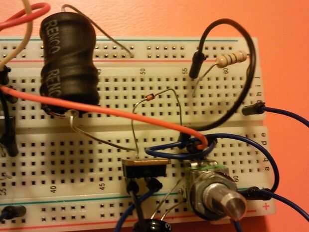 Como inductancia utiliza un dispositivo de RENCO RL-5472-4. Reemplacé el divisor del voltaje de retroalimentación con el potenciómetro. Esto hizo posible regular la tensión de salida.