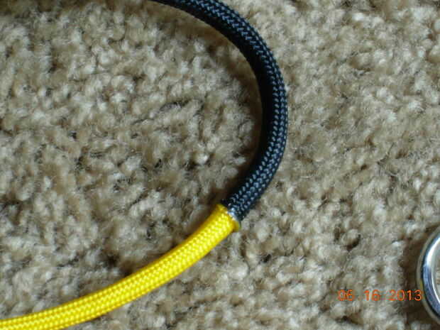Esta es la parte más fácil. Sólo calentar los extremos de la paracord bastante que empiezan a derretirse, luego empuje los dos extremos fundidos en uno a. Wala! Dos cuerdas son ahora uno!