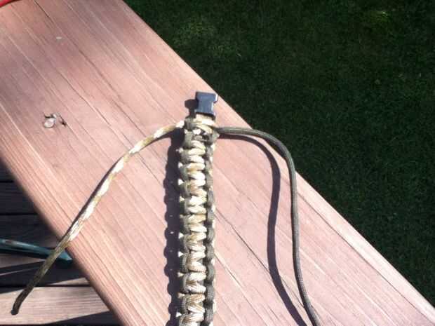 Cuando te quedas sin espacio para tejer cortan el cable para extra lo más cerca que puede llegar a la armadura entonces tome un encendedor y fundir el extremo, tomar la parte metálica del alumbrador y aplanar la parte fundida contra el tejido, seguir adelante y hacerlo con ambos lados.