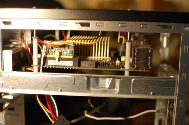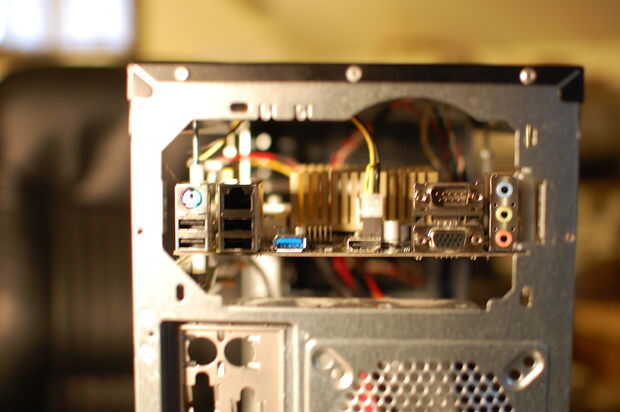 Saque la placa e instalar el RAM, fuente de alimentación, los cables del panel frontal y los cables de unidad. Todo lo que se conecta en el tablero debe conectarse antes de instalar la placa base. No tendrás espacio para enchufar cualquier cosa una vez que la Junta está en su lugar.