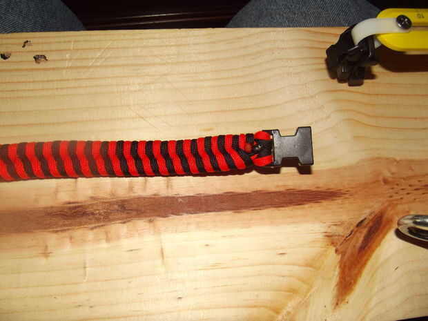 Casi listo. Ahora usted puede terminarlo a su manera o hacer lo que hizo y simplemente cortar y quemar los extremos presionando sobre ellos así que no serían un problema en la muñeca. Y si alguna vez el cordaje su deshacer fácilmente. Buena suerte y diviértete.