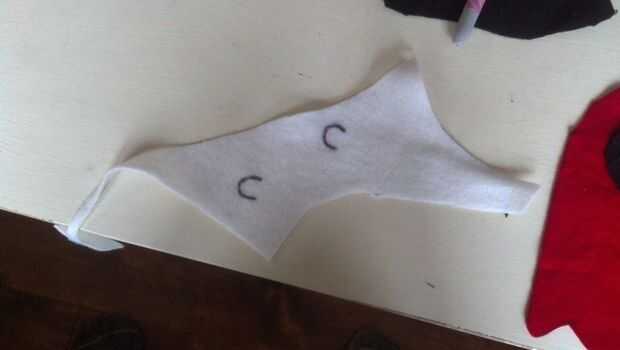 seguimiento de los ojos no los alumnos. Pero de todos modos agarrar algunos fieltro blanco y trace las pupilas de los ojos luego cortar em hacia fuera.