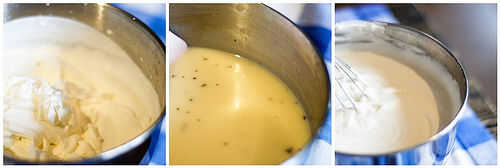 3. Agregue la mezcla de miel y crema a la nata. Bate hasta que quede bien mezclado.